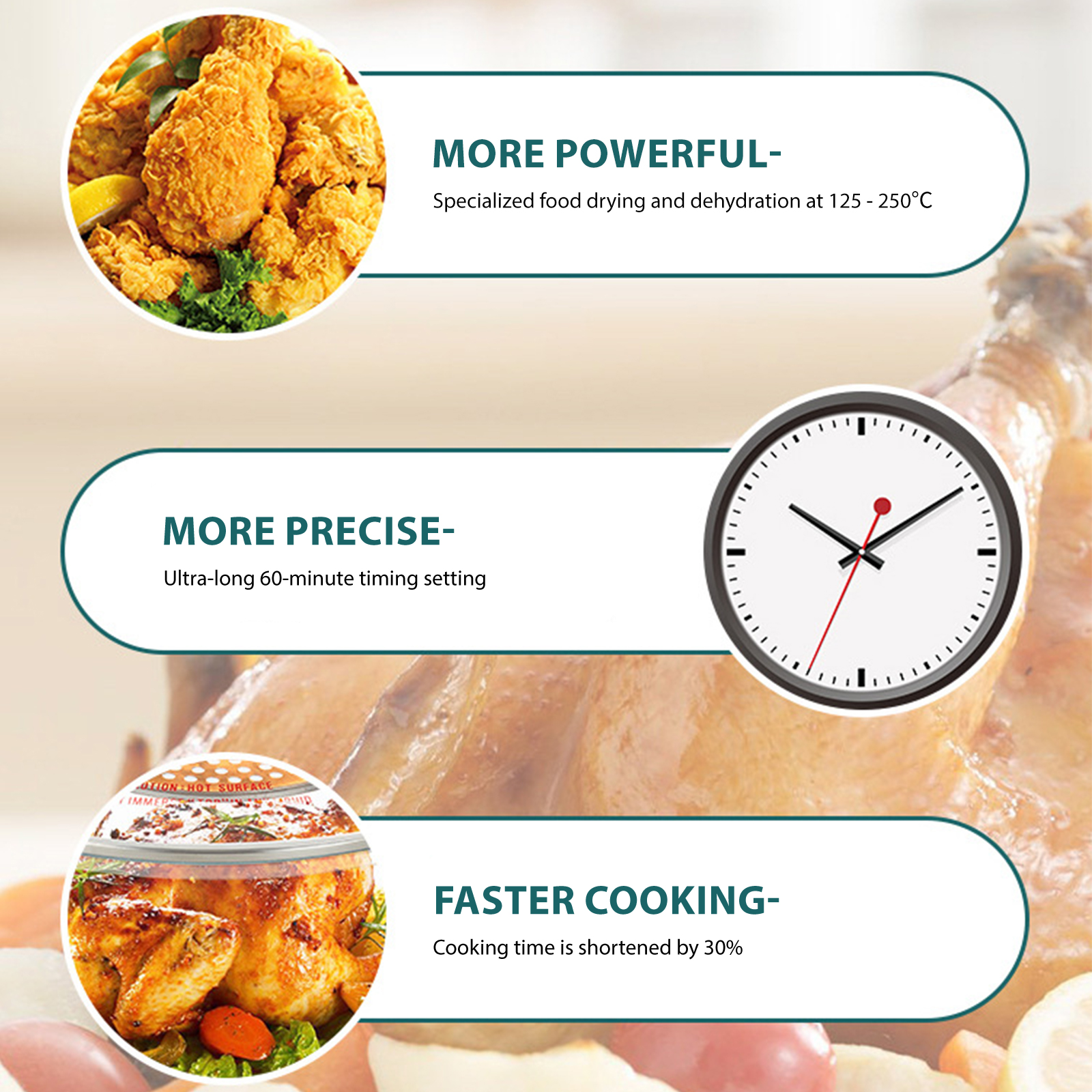 The most eye-catching feature is the all-glass visual window, allowing you to observe the changes of ingredients in real time without opening the lid: the crispy transformation of fried chicken from white to golden yellow, the cute appearance of cookies gradually puffing up under the heat, and the alluring process of French fries gradually turning caramel color. Every step is under control, saying goodbye to the awkwardness of cooking by feeling.