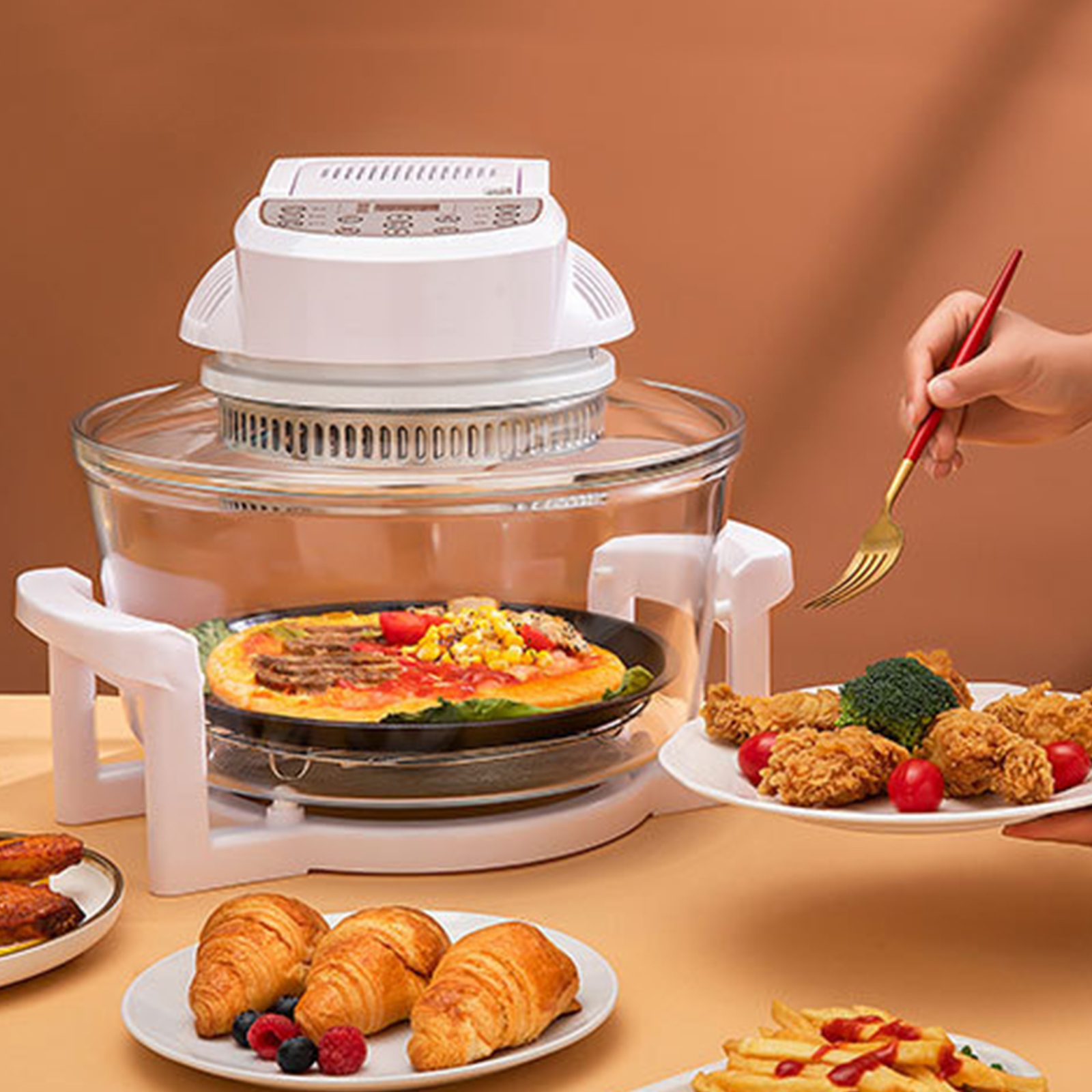 Make the cooking process visible peace of mind and deliciousness - This glass air frying pan oven redefines the possibilities of countertop small kitchens. With flexible capacity options of 12L or 17L, it can easily accommodate exquisite simple meals for one person or baked snacks for the whole family. It doesn't take up much space but offers great potential.