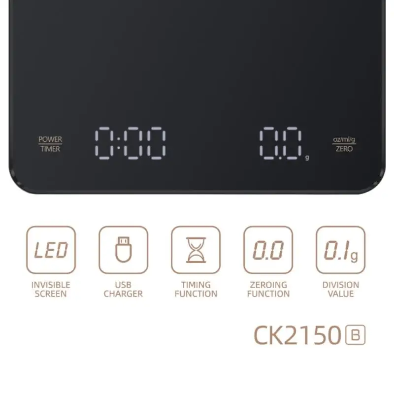 Built-in battery charging Electronic Scale Built-in Auto Timer Pour Over Espresso Smart Coffee Scale Kitchen Scales 3kg 0.1g